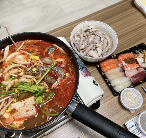 국물을 워낙 좋아해서 해물탕 너무 좋아요 밥대신 오늘도 역시나 초밥 ㅋㅡ ㅋ