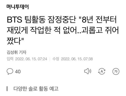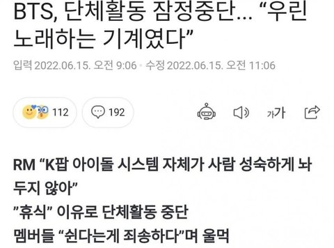 저정도면 기자 고소해야할정도. 기자들은 본인이 가진 기자라는 위치의 영향력은 씨이팔 1도 고려안하고 저짓거리함 대다수머글들은 진짜 저 문장에서 주는 의미그대로 그렇게 말한줄 알거고 기자들도 그걸 알면서 저렇게 기사뽑아쓰는거니까 빡치는거. 숏ㅂ박스? 뭐 개그맨 유튜버가 연예부기자 패러디한거보고 불쾌하다 하던데 ㅋㅋㅋㄱ지들이 한짓이 있으니 찔려서 불쾌한거겠지ㅋㅋㅋㅋㅋ