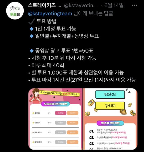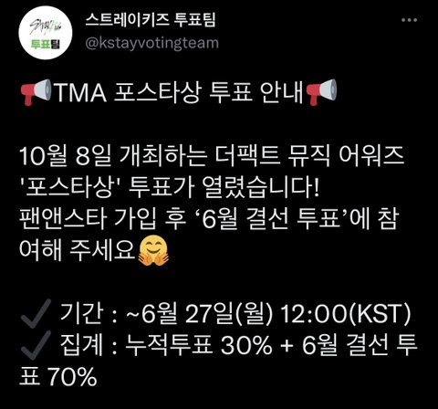 투표팀 짹 링크 : https://twitter.com/kstayvotingteam/status/1536694964641361921?s=20&t=Dsm3EHKiVukHvpJbofFhzg
