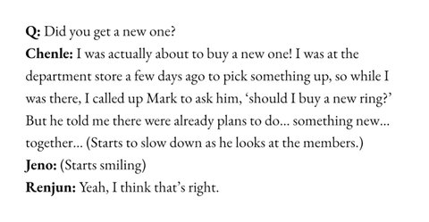 천러가 백화점 갔을때 마크한테 전화해서 우정반지 새로 사야할까? 물었다는데 마크가 이미 계획이 있다고...새로운거...함께....