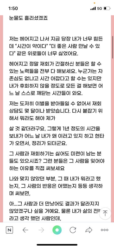 이제 한달 지남 한번도 안잡아준 그사람이 너무나 미웠음 하지만 나는 나를 사랑하지 않는 사람을 놓친거지만 그사람은 자기자신을 사랑해..