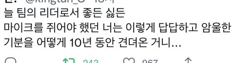 우리는 고작 한시간짜리 일곱명의 영상으로 몇백만명이 펑펑울면서 다같이 슬퍼하고 만약 어제 정국이가 안왔다면 다같이 며칠을 갑갑한 기분으로 살았을텐데