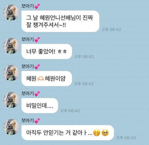 혜원언니가 밥 맛있는 거 사줬다는 거 개귀여움ㅋㅋㅋㅋㅋㅋㅋㅋㅋㅋㅋ