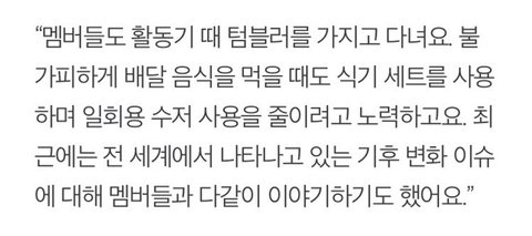 데뷔 때부터 꾸준히 환경보호 관련해서 이것저것 많이 하는데 아직 모르는 사람들이 많은 것 같음