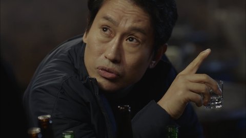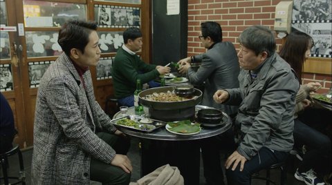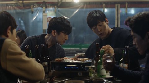 취한 동료들을 보며 자리에서 일어서 나가려는 광호