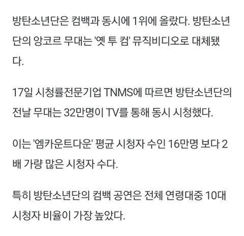 국내팬중에선 40대가 젤 많아 왜냐면 한국 40대 인구수가 10, 20, 30대 보단 훨 많아서야. 지금 한국 인구연령대 분포 자체가 50대가 젤 많고 40대, 30대 등 점점 적어. 50대 인구가 지금10대 인구의 2배야. 한마디로 방탄은 10-40대 골고루 대중적