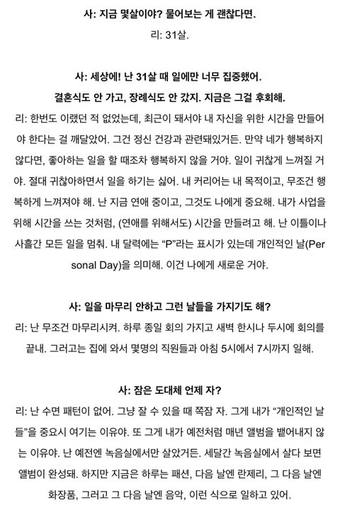2019년 인터뷰에서 일하는 패턴 공개