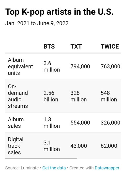 빌보드발표 미국내 Top kpop 아티스트 순위