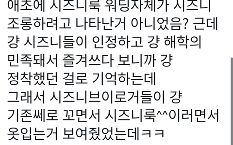 씹즈니 즈그들이 시즈니룩 시즈니룩 ㅇㅈㄹ 잘만하고 다니더만ㅋㅋㅋ