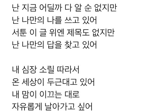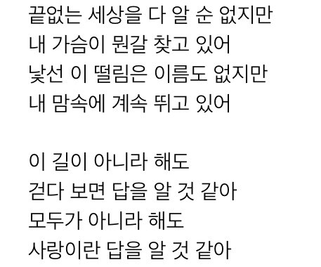 내가 마음에 이끌려 가는 길이 정답이 될 거고 나만의 길이 될거라는게 너무 좋지 않니...?ㅠㅠㅠㅠㅠ