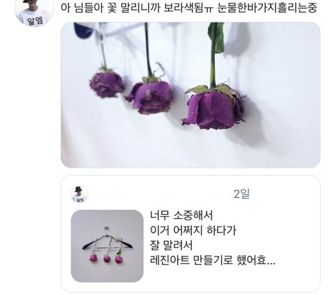 어떤분이 공방에서 받은 꽃 말렸더니 보라색됐대ㅠㅠ