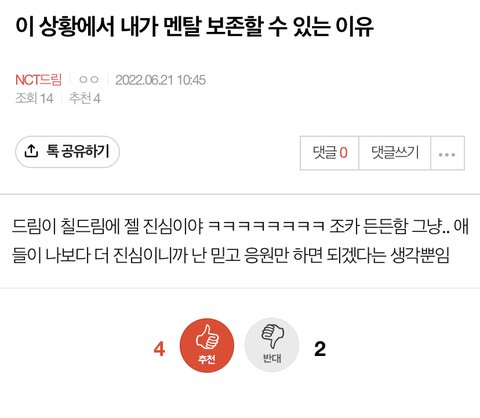 글 올라오자마자 좋아요 누르기도 전에 두 명 호다닥 반대 누른 거 봐 이런 글에ㅋㅋㅋㅋ일단 아무것도 나온 거 없으니까 플 그만타고 콘서트 얘기나해보자ㅋㅋㅋㅋ난 일단 vcr로 아기신기 영상 존버중