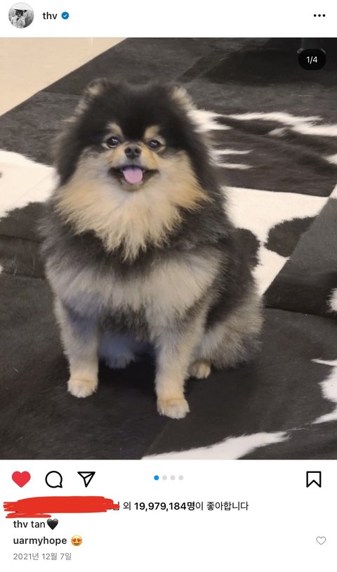 뷔 좋아요 곧 2천만 되겠네..