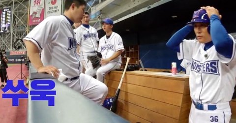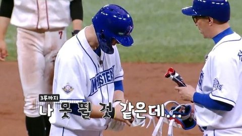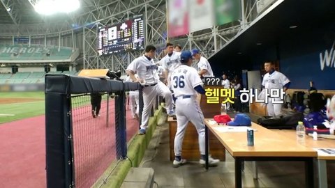 그런데 대뜸 이승엽감독이 헬맷을 찾음