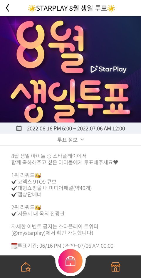 스타플레이 어플에서 지금 8월 생일 1위 뽑아서 리워드 준다는데