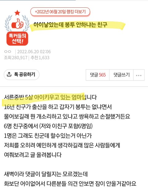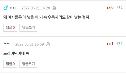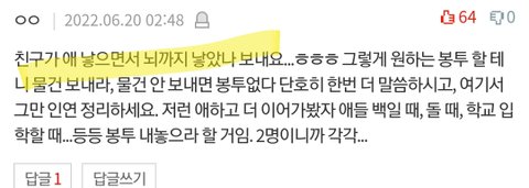 결론 : 댓글 보면 "애낳으면서 뇌도 낳았냐"는 댓이 눈에 띄게 많은데 글쓴이는 그걸 원하고 있는거임 한심한 주작충ㅉㅉ