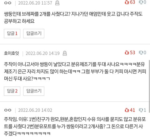(2) 분유포트를 쌍둥이라서 2개사준다? 여기서 완전 주작. 애안키우시는 분들은 모를 수 있음.