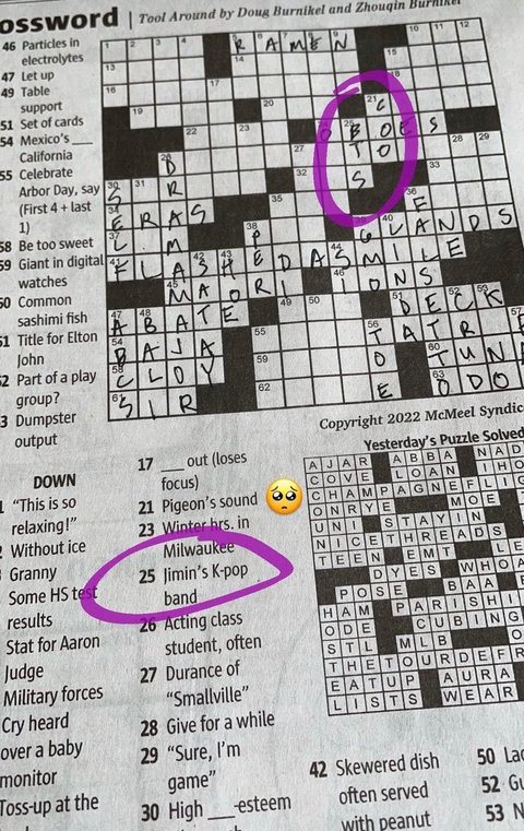 아까는 시애틀 신문 퍼즐에 지민이랑 BTS 나왔다는거 봤고