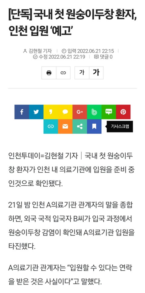 국내에 첫 원숭이 두창 환자 발생함