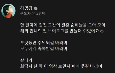이 영상은 강민경이 결혼 준비를 하는 이해리의 첫 브리로그를 만들어 준 영상임
