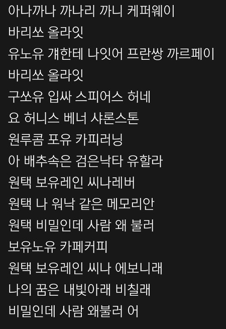 자신의 곡 '아나까나'가 가사 들리는대로 옮겨 적어 만든 노래라