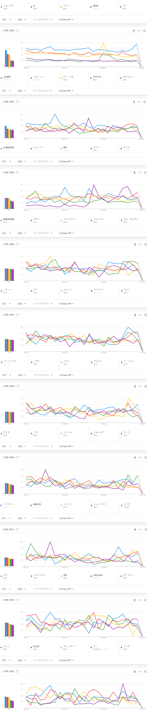 2022년 상반기 일본 유튜브에서 가장 많이 검색된 케이팝 남자아이돌그룹 멤버 TOP50(집계기간 2022 1 - 2022 6)