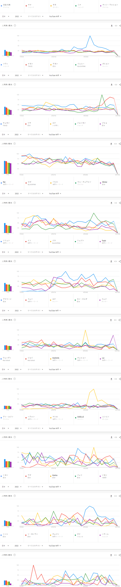 2022년 상반기 일본 유튜브에서 가장 많이 검색된 케이팝 여자아이돌그룹 멤버 TOP50(집계기간 2022 1 - 2022 6)