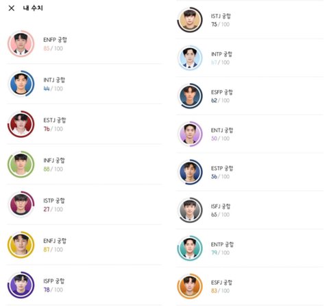 댓글로 각자 mbti말해주고 궁합 순위 올려주면