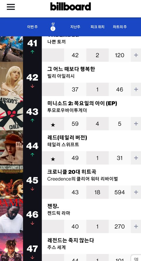 네 그래서 빌보드200 5주째 상위권 유지에 지난주 보다 16계단 상승 역주행 했네요ㅋ
