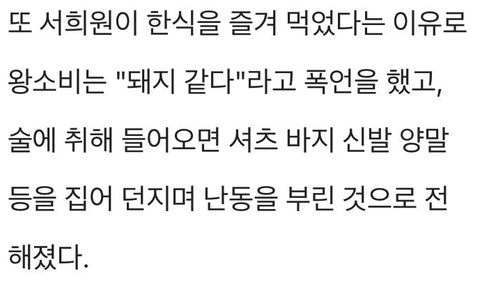 1. 평소 대만 무시하는 발언을 하고 한식 먹는다고 폭언 함