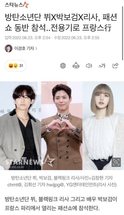 뷔 박보검 리사 전용기타고 셀린느간대