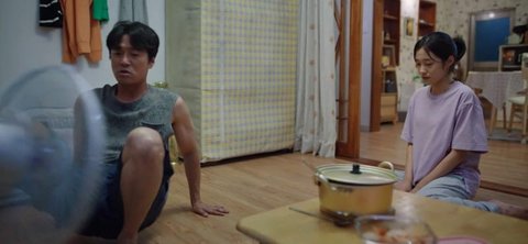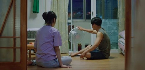 이 때 선풍기가 툭하고 고개를 떨구는 장면,