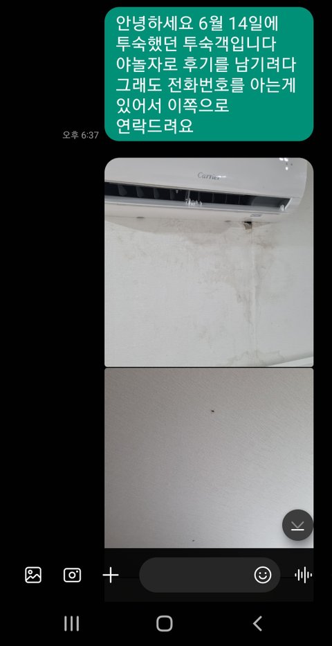 첫날이고 비가와서 입실시간맞춰 기다렸다가 들어가는 순간 사진과 너무 다른 모습에 당황했습니다