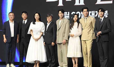 영화 '외계+인' 1부의 제작보고회가 23일 진행됐다. 이 자리에는 최동훈 감독을 비롯해 배우 류준열, 김우빈, 김태리, 소지섭, 염정아, 조우진, 김의성이 참석했다.