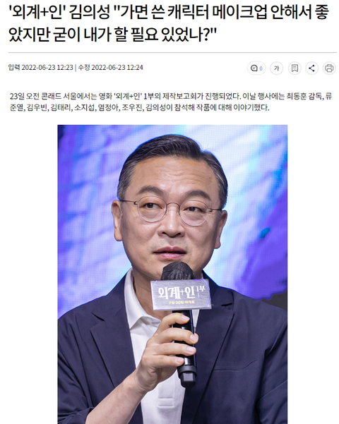 극중에서 가면을 쓰고 연기한 김의성은