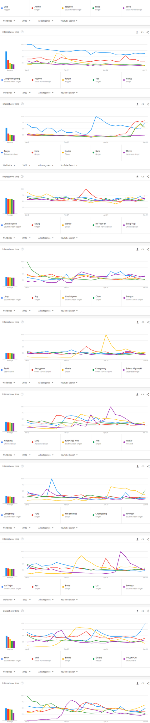 2022년 상반기 전세계 유튜브에서 가장 많이 검색된 케이팝 여자아이돌그룹 멤버 TOP50