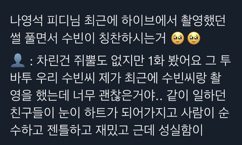 젠틀하고 재밌고 성실하고 너무 괜찮다는 수빈이 어딜 가든 사랑 받는구나 ㅠㅠㅠㅠㅠ