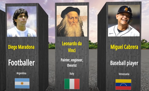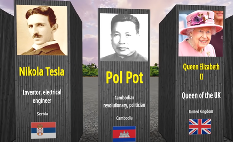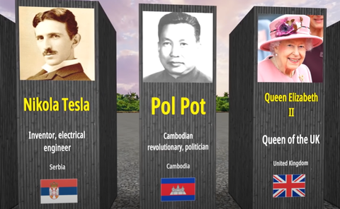 해당 나라에서 가장 유명한 사람들이 다 나온다. 현존하는 유명인도 많이 나오고