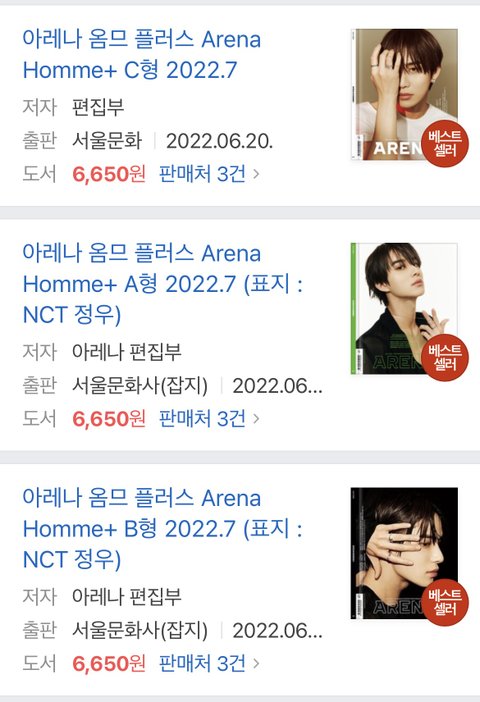 정우것도 찾아보니까 정우 아레나옴므도 베스트셀러다ㅏㅏ