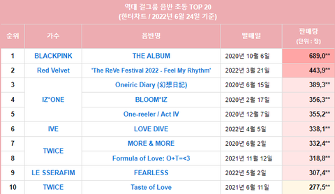 걸그룹 앨범 초동 역대 6위