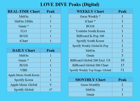 데뷔후 약 7개월 LOVE DIVE 발매 후 83일째 각종 기록