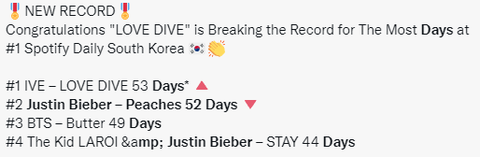 - 스포티파이 한국 차트 가수 통틀어서 역대 최장기간 1위 -