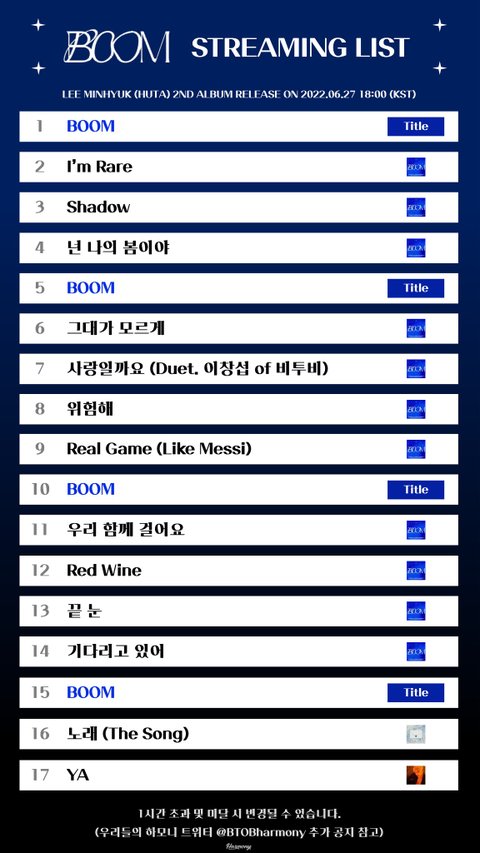 스밍리스트 떴어 오늘 주말이니 미리 음원사이트도 준비해두자