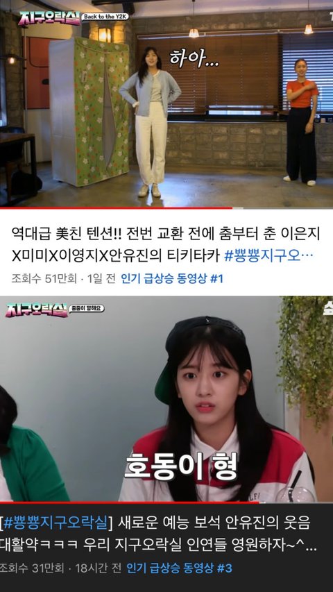 나만 안 웃긴가 이은지가 아이브 춤 췄을때부터 기빨린거 다보이고 판깔아줘도 어쩔줄 몰라서 반윤희 포즈만 계속하던데 댓글에 다 안유진 예능감 쩐다고 해서 놀람 멘트도 잘 못치고 편집을 우쭈쭈하면서 잘해주는 느낌