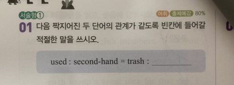 ++ 다들 고마워!! 문제집은 백발백중이고 답은 garbage가 맞더라!! 그리고 조언 너무너무 고마워ㅠㅠ ❤