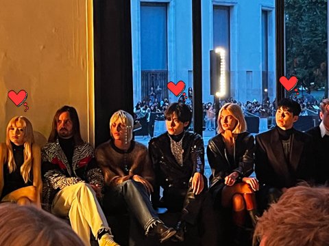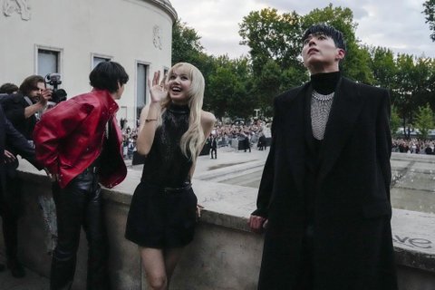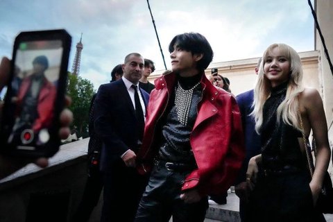 셀린느 쇼에서 박보검 × 블랙핑크 리사 × 방탄소년단 뷔 쓰리샷