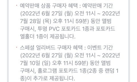 예판 구매자 얼리버드 구매자 따로 있넹 지금 사면 앨범 하나에 포카 2장 더 얹어줌