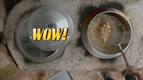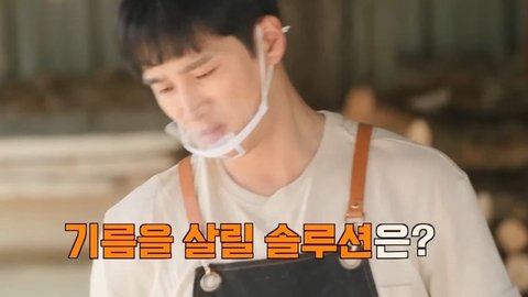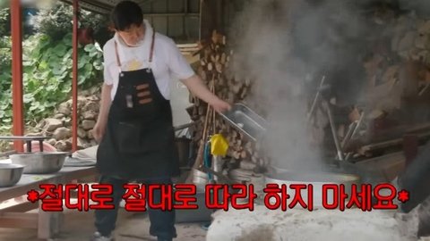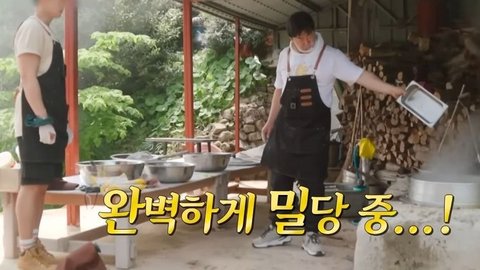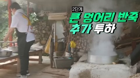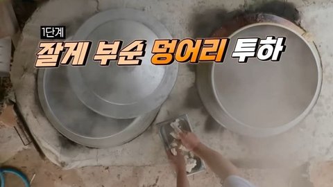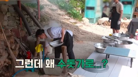 가열된 기름 튀는거 조정하면서 물 투하하는중