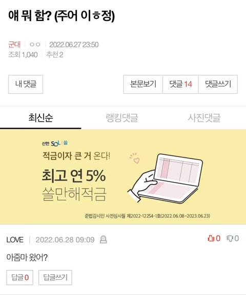 + ㅈㅂ 댓글 확인 좀 하고 유입이면 닥눈삼해 앞으로 눈새유입 줌마 보이면 첨엔 댓글로 알려주고 눈막귀막이면 바로 박제할거임