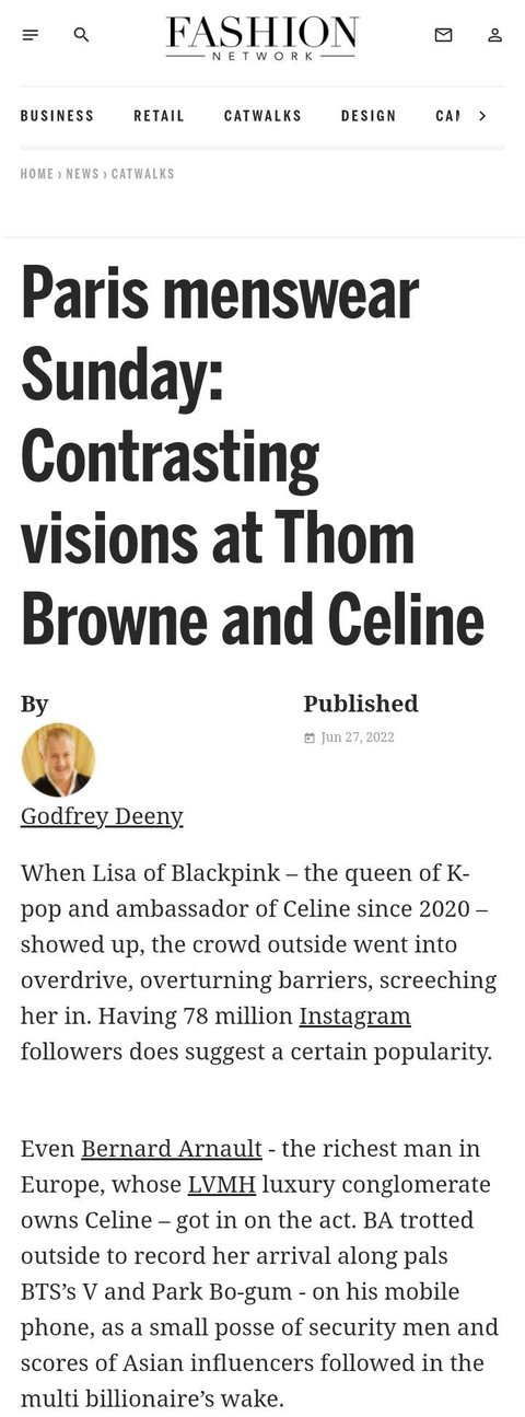기사도 났고 이미 다 증명된 인기임. 셀린느 매출도 리사 때문에 엄청 올랐고 에디 슬리먼이 엄청 이뻐함. 근데 탑남돌이랑 왜 비교 당하면서 후려치는지 알 수가 없음